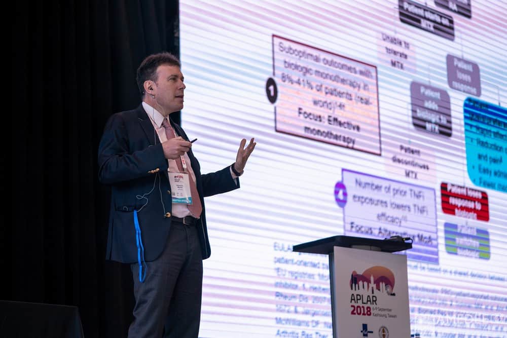亞太風濕病醫學會(英文縮寫為APLAR)成立於1963年在澳洲雪梨,今年特別在台灣的高雄展覽館舉辦會議活動;雖然說是會議,他們在高雄展覽館南管區也有許多醫療參展攤位,很特別的是,攤位結合了台灣在地美食,許多攤位內還設置了美食攤位,讓參展的醫生與研究學者在展覽之虞,還能品嘗台灣道地小吃,是一個前所未有的佈展方式。
