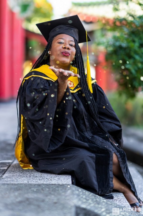 安娜是在台灣讀書的外籍學生,終於在今年畢業了,為了紀念自己在台灣的生活、畢業,特別準備了畢業學士服、氣球、字牌…